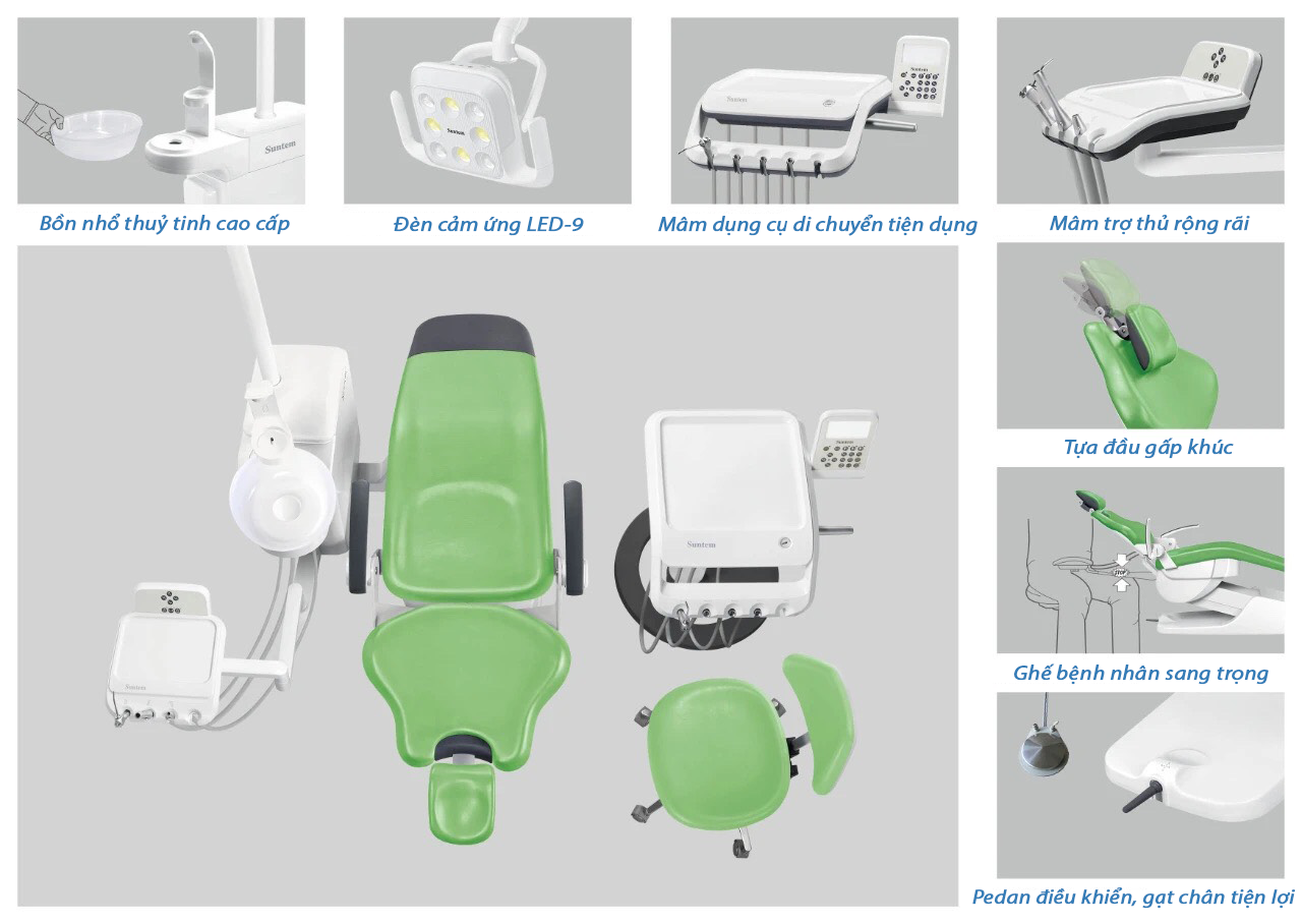 GHẾ NHA KHOA SUNTEM ST-D309 – BẢN NÂNG CẤP .Ghế nha khoa SUNTEM ST-D309 là loại máy răng được thiết kế có nhiều tính năng ưu việt. Được điều khiển bằng motor 24V DC với bộ hỗ trợ cân bằng…